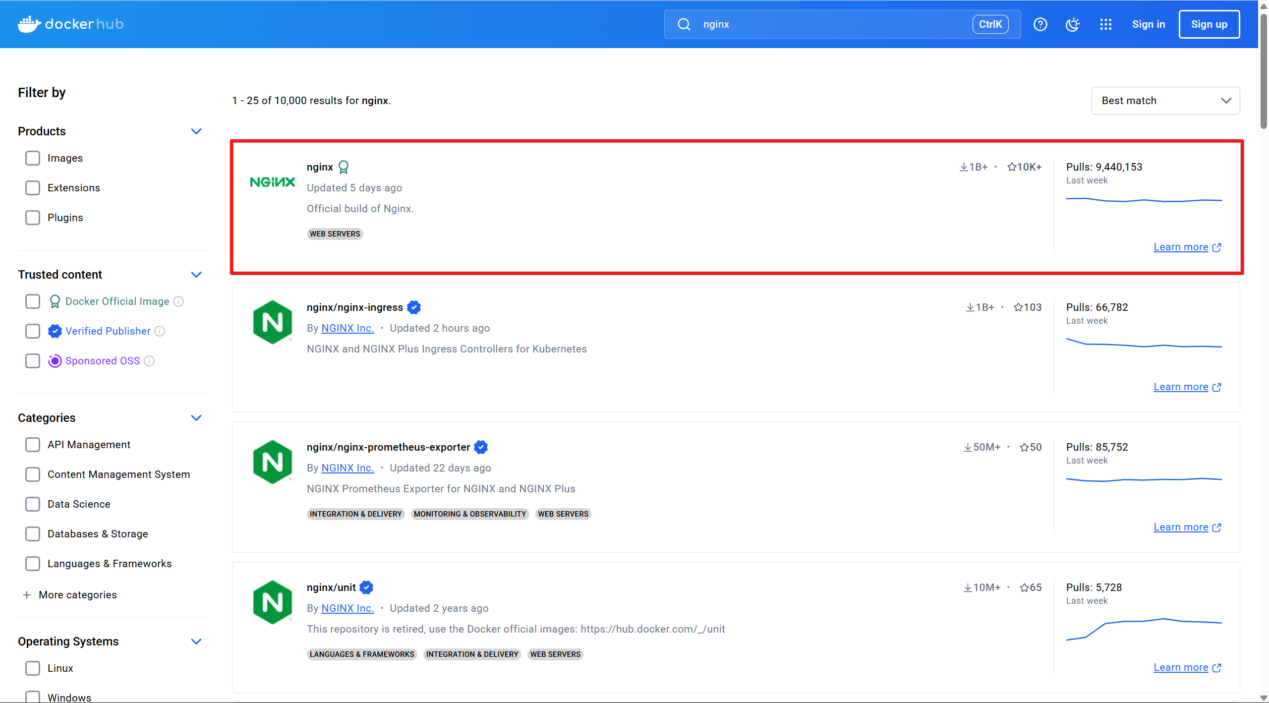 - 【step 1】访问 [docker hub](https://hub.docker.com/) 搜索要部署的中间件