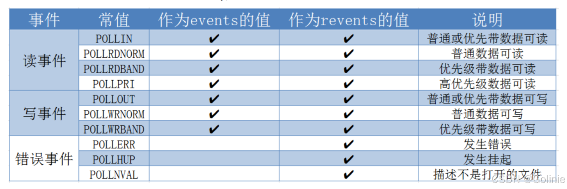 poll函数返回值为-1时表示失败,>0会返回n,表示检测到集合中有n个描述符发生了变化。