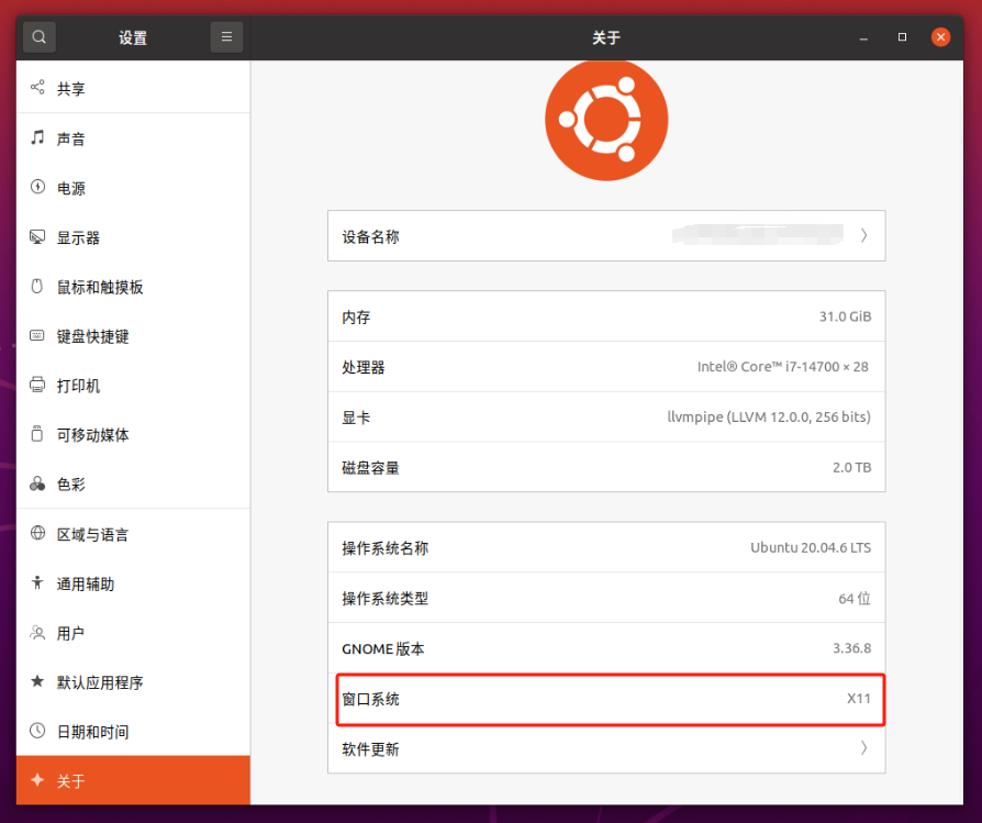 2.确认窗口系统为X11。