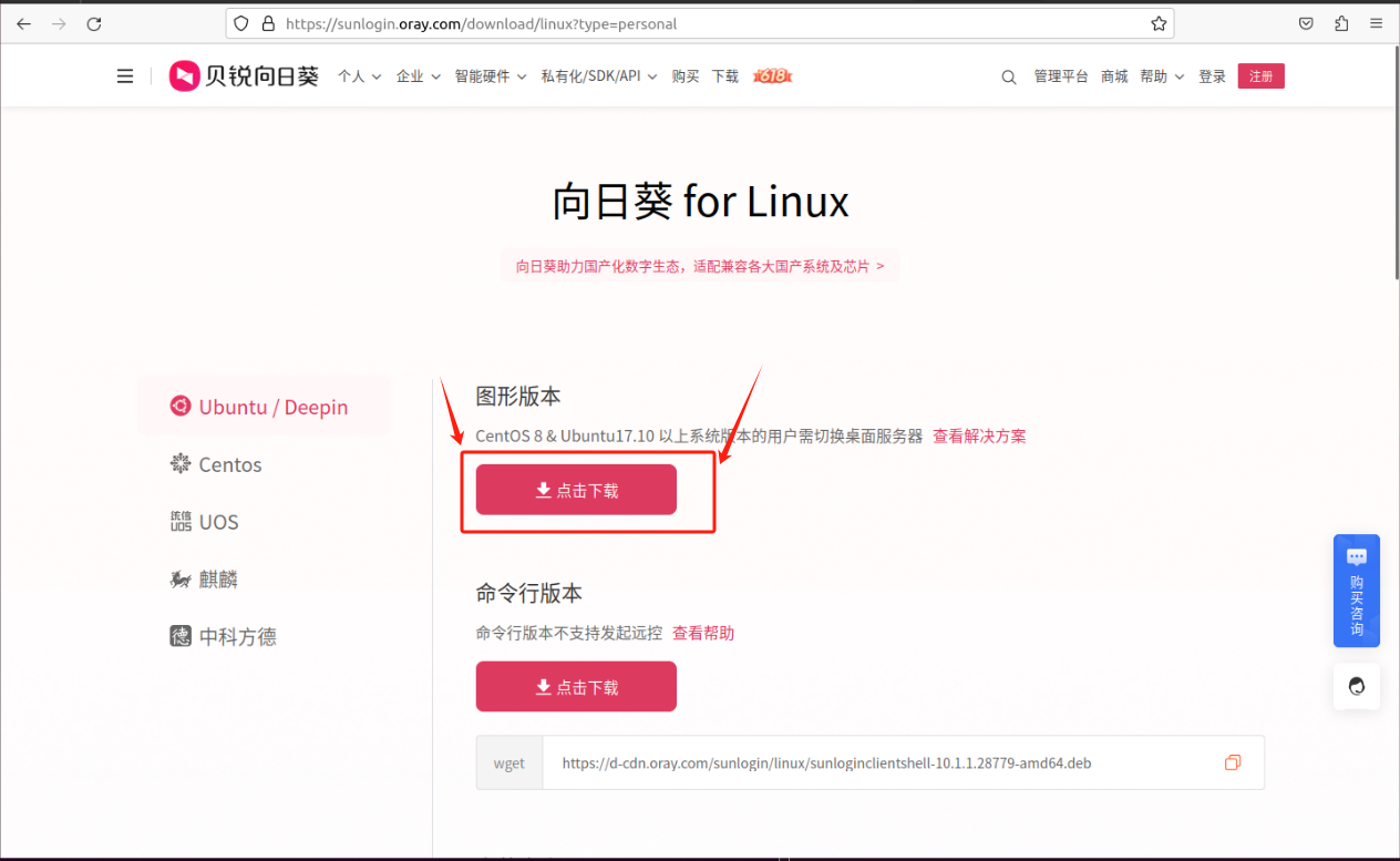 3.向日葵官网,下载图形版安装包。
