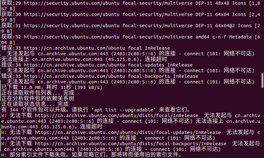 再次更新,发现还是显示网络不可达