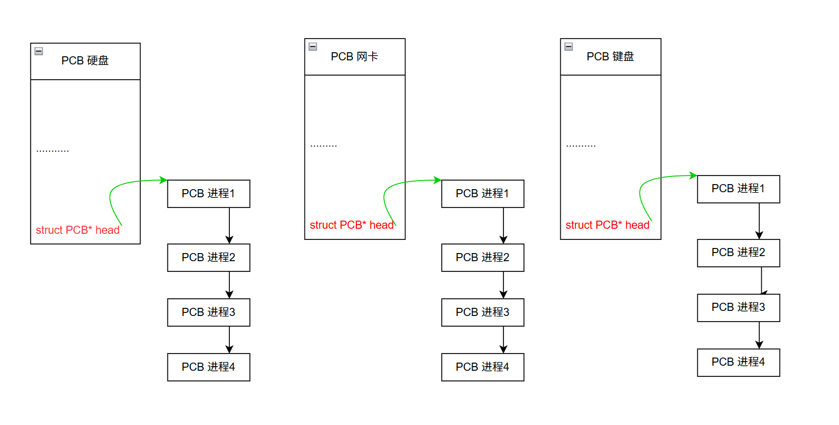 操作系统对与软硬件管理的基础是:先描述,再组织。操作系统也要对硬件进行管理,所以操作系统中理应存在描述硬件信息的结构体对象。所以处于阻塞状态的进程放在对应外设(等待从那里读取数据)结构体对象的等待队列中。
