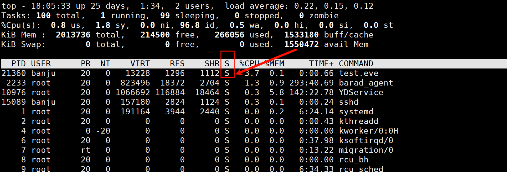 S(sleeping)阻塞状态