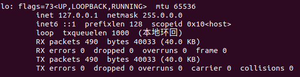 2、在终端窗口使用 ifconfig 命令也没查询到相关网络接口,只有一个lo接口,如下图: