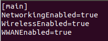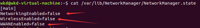 执行下面命令,修改/var/lib/NetworkManager/NetworkManager.state文件sudo vi /var/lib/NetworkManager/NetworkManager.state修改为下图: