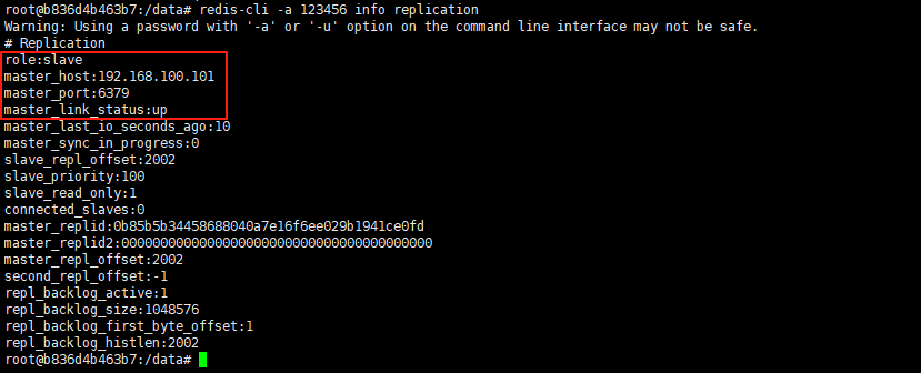 redis-cli -a 123456 info replication
