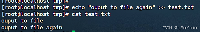 执行以上命令,输出内容就被追加到test.txt文件的末尾。