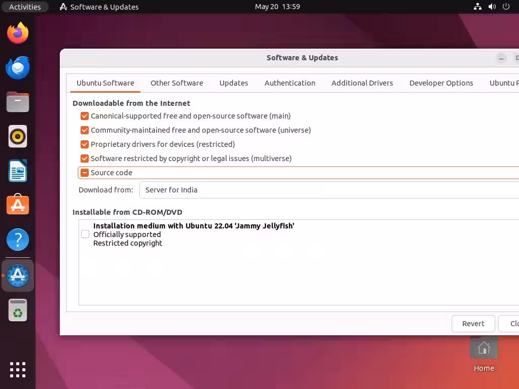 首次登录新系统后,是时候检查您的软件源了,以确保您启用了所有必要的存储库,包括 main、universe、restricted 和 multiverse。