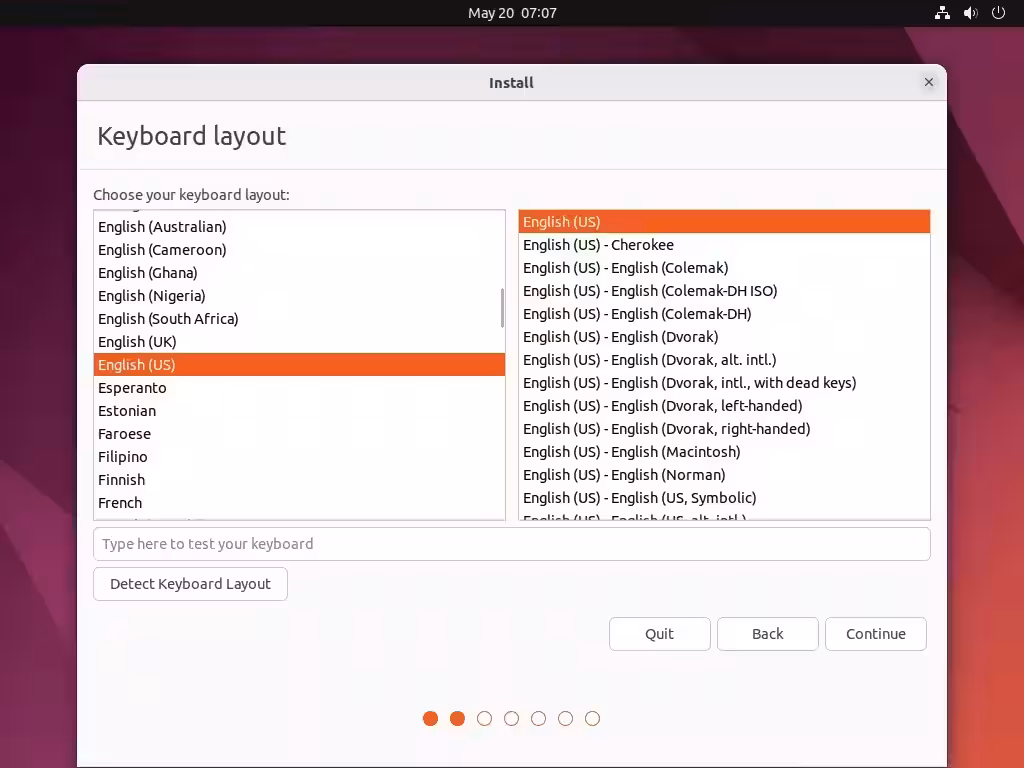 5. 如果您已准备好安装 Ubuntu,请选择“安装 Ubuntu”并按照屏幕上的说明选择您的语言和键盘布局。