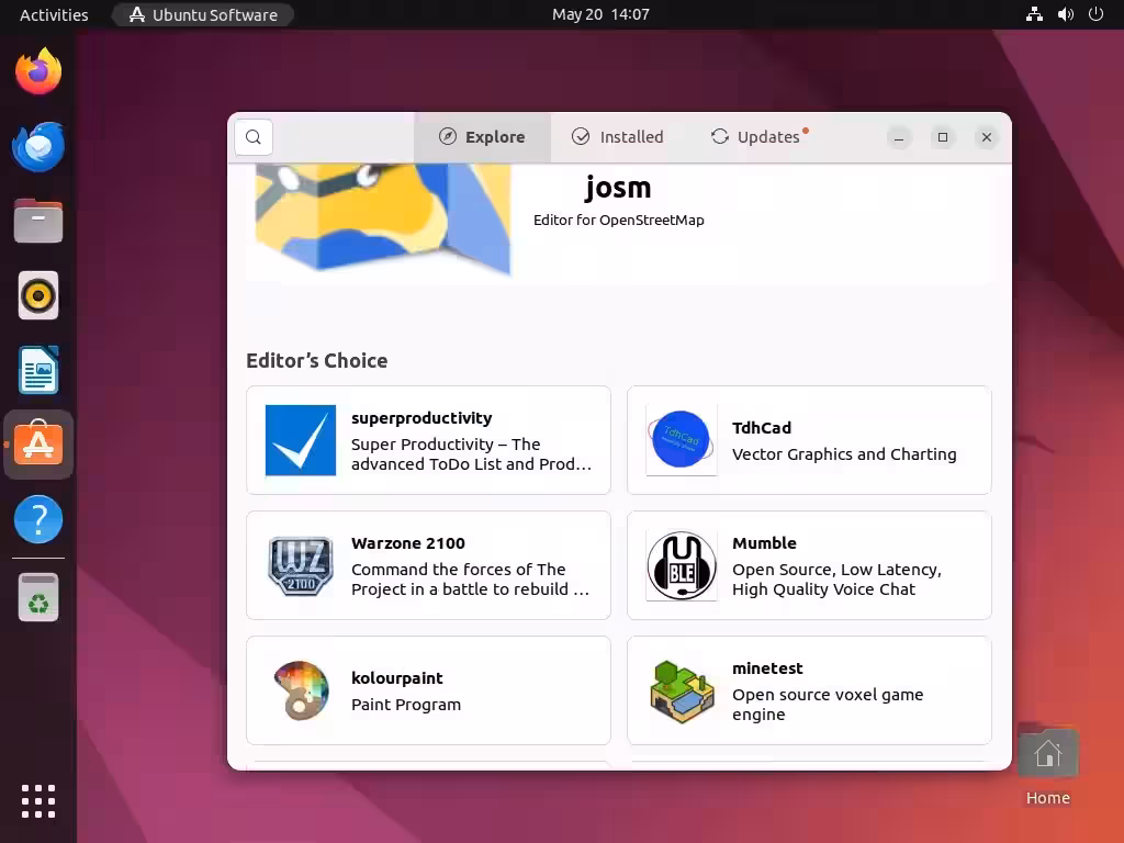 对于基本用户使用,请在搜索栏中键入“Ubuntu Software”,按 Enter 键打开它,然后浏览搜索结果以找到您要查找的软件。