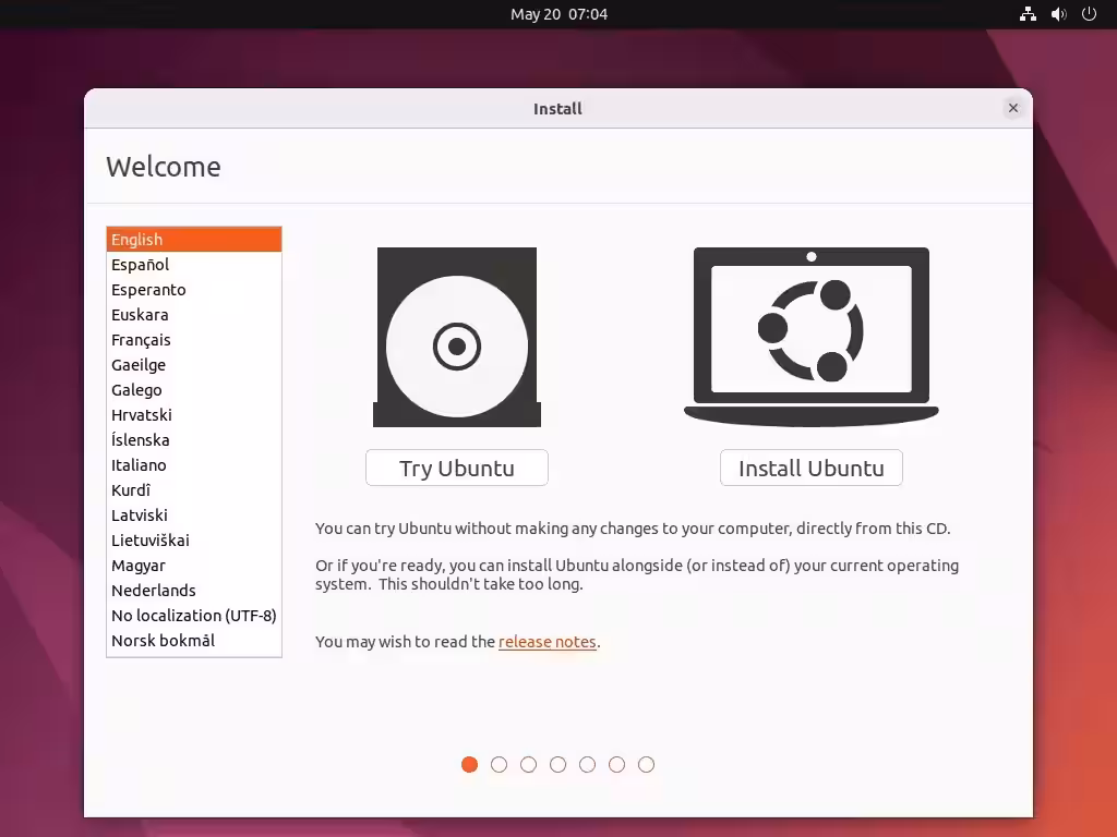 3. USB 内容将加载到您的 RAM 内存中,直到它到达安装屏幕,在那里您可以选择“试用 Ubuntu”或“安装 Ubuntu”。