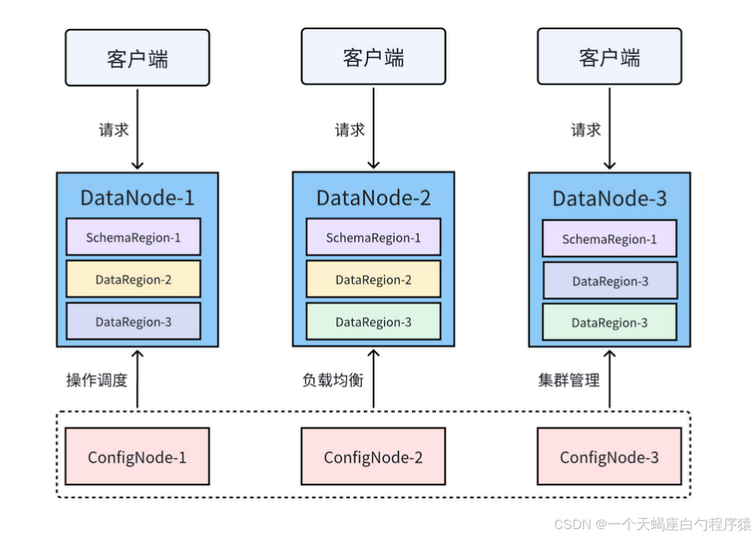 - ConfigNode:负责元数据管理与集群协调(主节点)