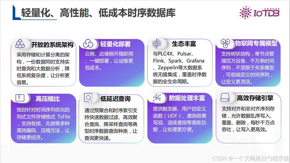 在物联网与工业互联网快速发展的背景下,时序数据管理成为企业数字化转型的关键技术。Apache IoTDB作为一款专为时序数据设计的开源数据库,凭借其高性能、高可用性和易扩展性,在工业监控、智能电网、车联网等领域得到广泛应用