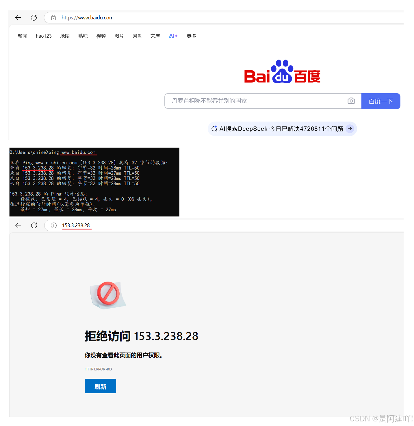 域名会通过DNS被解析为服务器的IP地址。但是现在的服务器不允许用户直接通过IP地址请求服务。