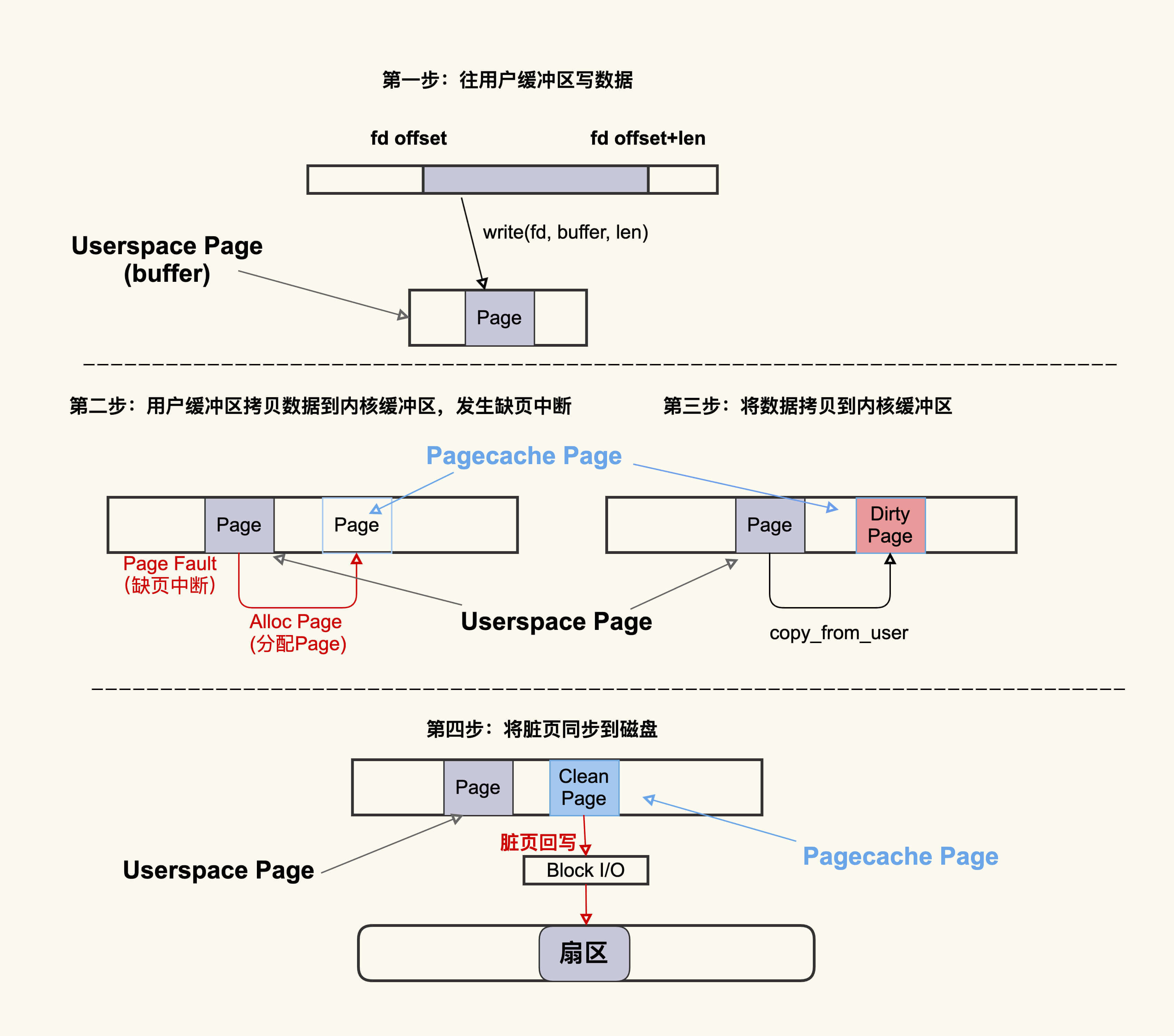 未命中:发起磁盘 I/O,将数据读入 page cache 后再返回