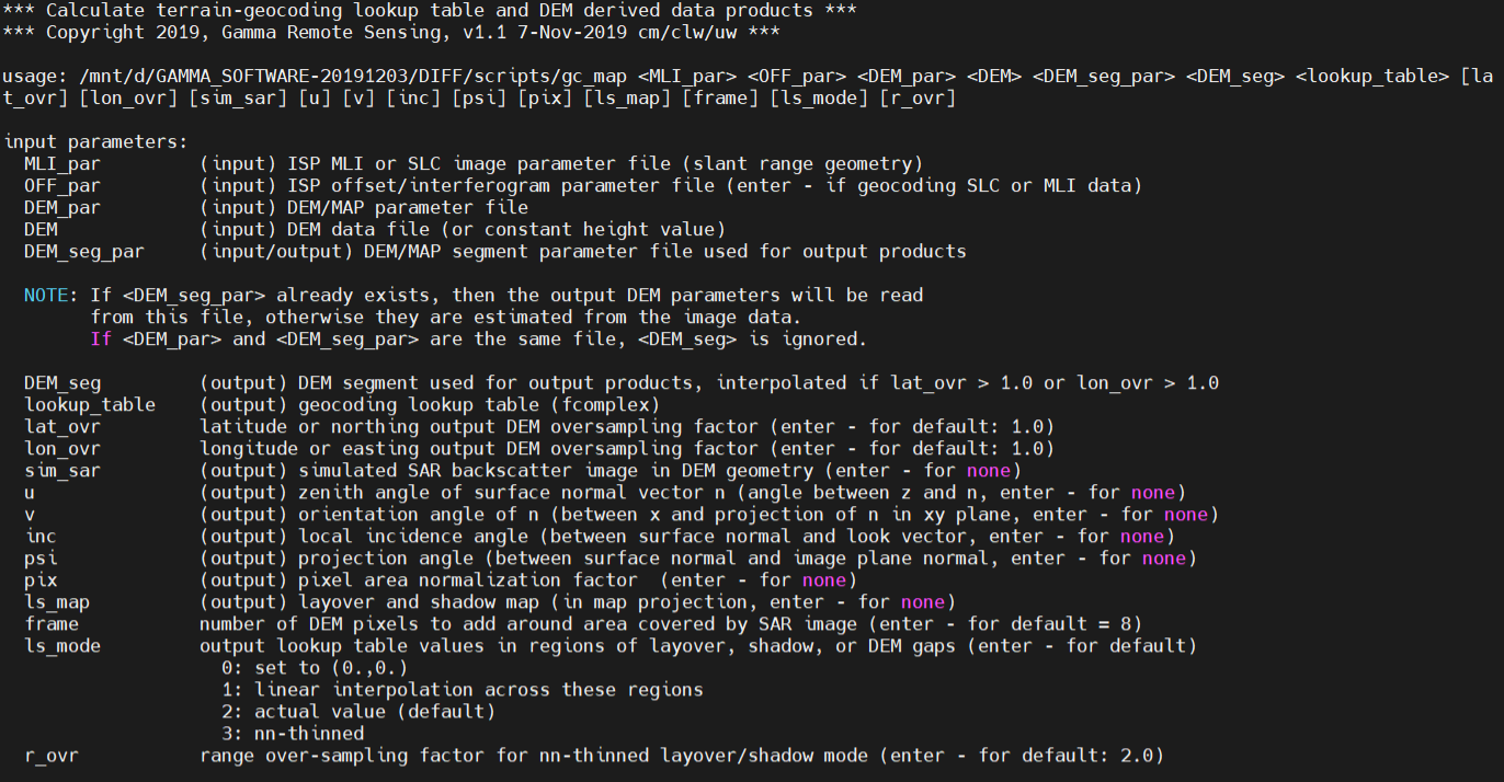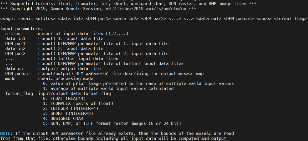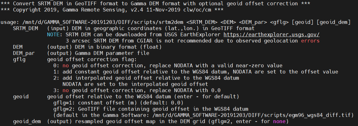 输出:1.GAMMA内部格式的.DEM 2.DEM对应的参数文件.par