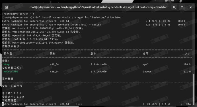 [root@pdsyw-server ~]# dnf install -y net-tools vim wget lsof bash-completion htop