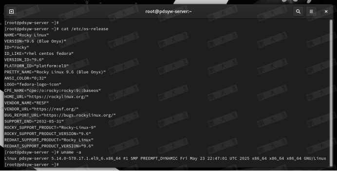 [root@pdsyw-server ~]# cat /etc/os-release [root@pdsyw-server ~]# uname -a