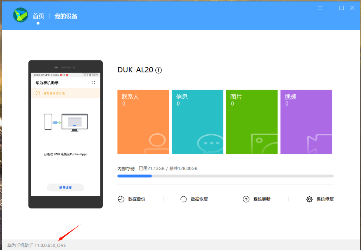 2、点击Get HiSuite自动跳转浏览器下载华为手机助手安装包,版本号为11.0.0.650_OVE