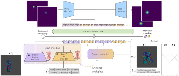 1. 大模型与语言指导的决策: 将机器人操控与大规模预训练模型相结合,成为2025年最引人注目的方向之一workshop。研究者利用视觉-语言模型(VLM)和大型语言模型(LLM)的语义理解能力,让机器人从高层指令出发规划布料操作动作。例如,Oriol Barbany等提出的BiFold模型利用预训练视觉语言模型来预测双臂折叠动作,能够将抽象的文字指令翻译为具体操作。BiFold在一个语言条件的折叠基准上达到最新性能,并证明可泛化到新的指令和衣物arxiv.org。