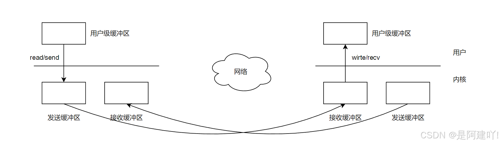 当用户使用read/send函数将数据发送给服务段时,实际上只是将数据拷贝到TCP中的发送缓冲区中,而发送缓冲区中的数据什么时候发?发多少?出错了怎么办?都是由TCP决定的。TCP实际通信的时候,其实是双方的操作系统进行通信,一方将数据从发送缓冲区通过网络发送给对方的接收缓冲区中,在接收缓冲区中的数据,用户可以通过write/recv函数读取上来。实际上来看read/send/write/recv函数就是拷贝函数。