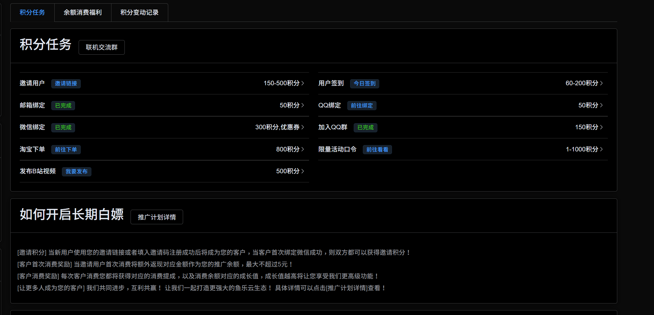 登录后进入积分管理页面,通过每日签到和完成任务积累积分。