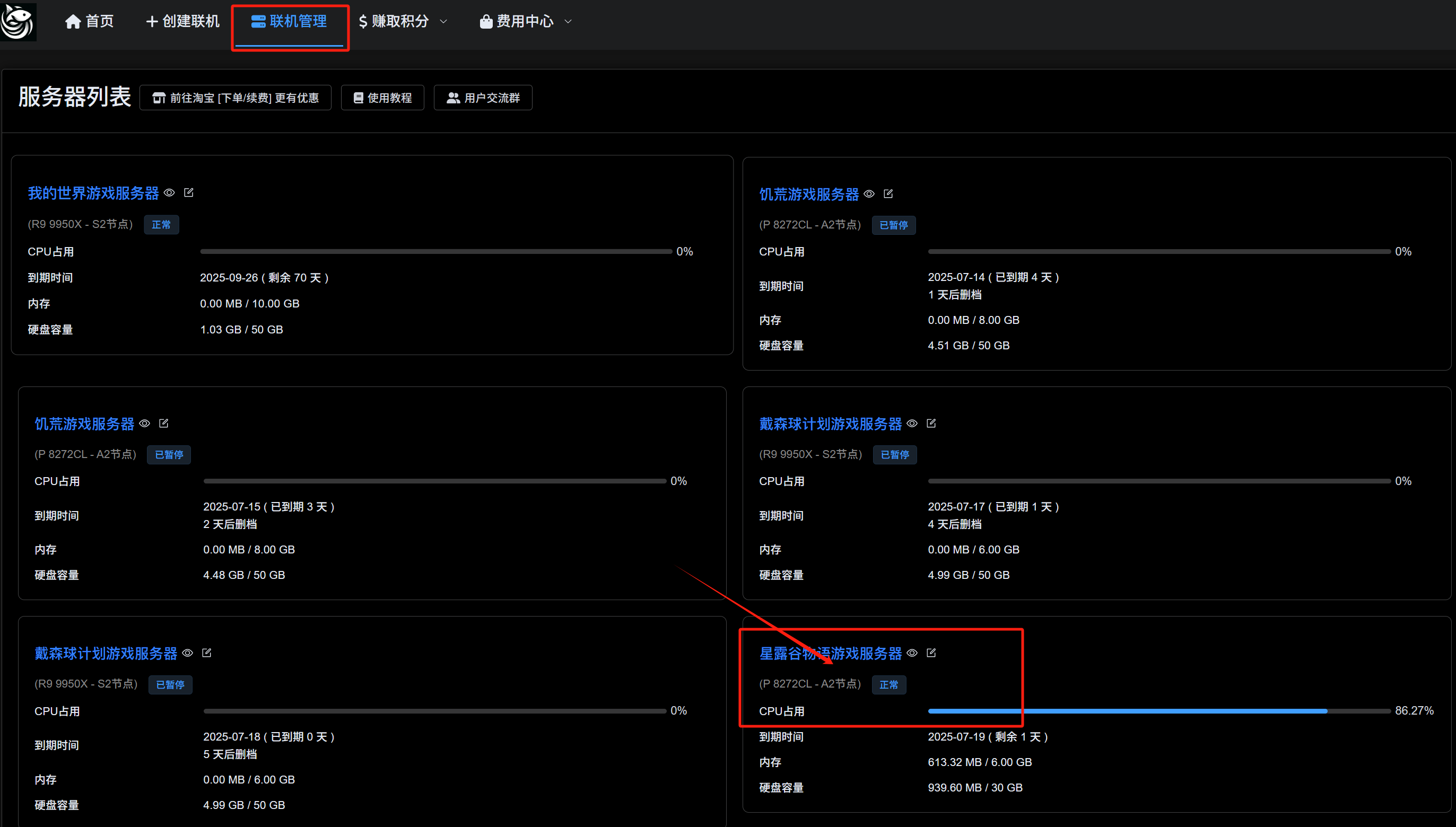 我们可以点击“联机管理”,在这里有独立的小窗口可以对服务器机器人进行控制