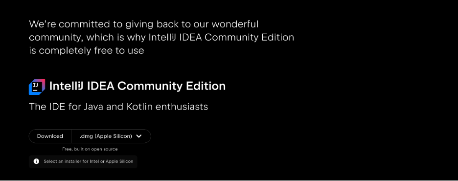 这是专业版IntelliJ IDEA Ultimate下载链接;鼠标向下滚动,页面下方,看到也有IntelliJ IDEA Community Edition(社区版)下载链接,如下图。