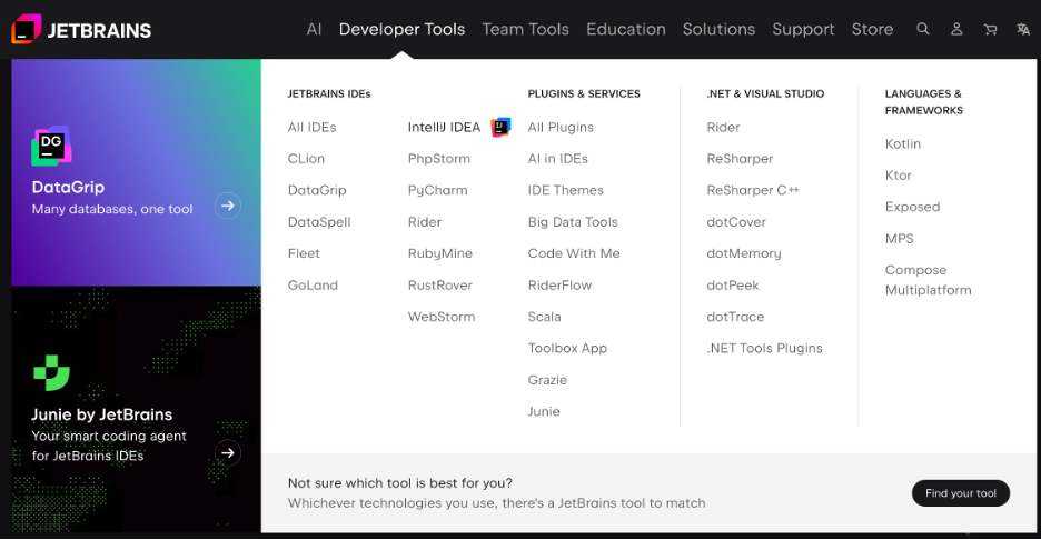 JetBrains 的工具以其高效和易用性而闻名,使开发人员的编码过程既愉快又高效。以下是JetBrains官网主页面。