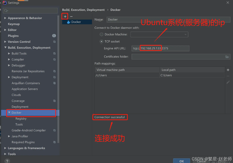 在 IDEA 的设置中(File -> Settings -> Docker),新建连接: