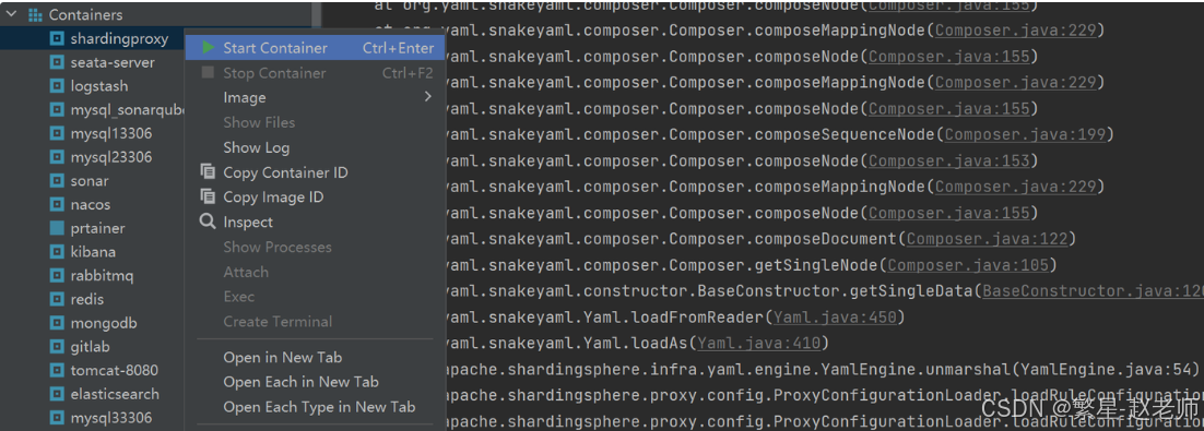 在 IDEA 中可以进行容器的各种操作: