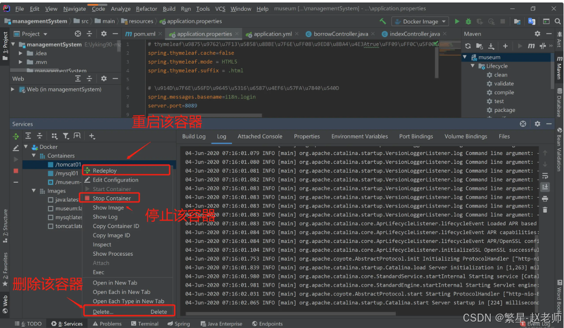 进行容器的重启、停止和删除等操作:
