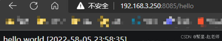 在浏览器访问地址 http://192.168.3.250/hello,可以看到应用在容器中正常运行: