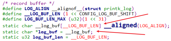在kernelprintkprintk.c中,定义有一个全局buffer: