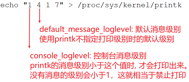 minimum_console_loglevel(console_printk[2]):表示控制台允许输出的最低日志级别为1。这意味着即使console_loglevel较高,也不会输出低于1级别的消息。
