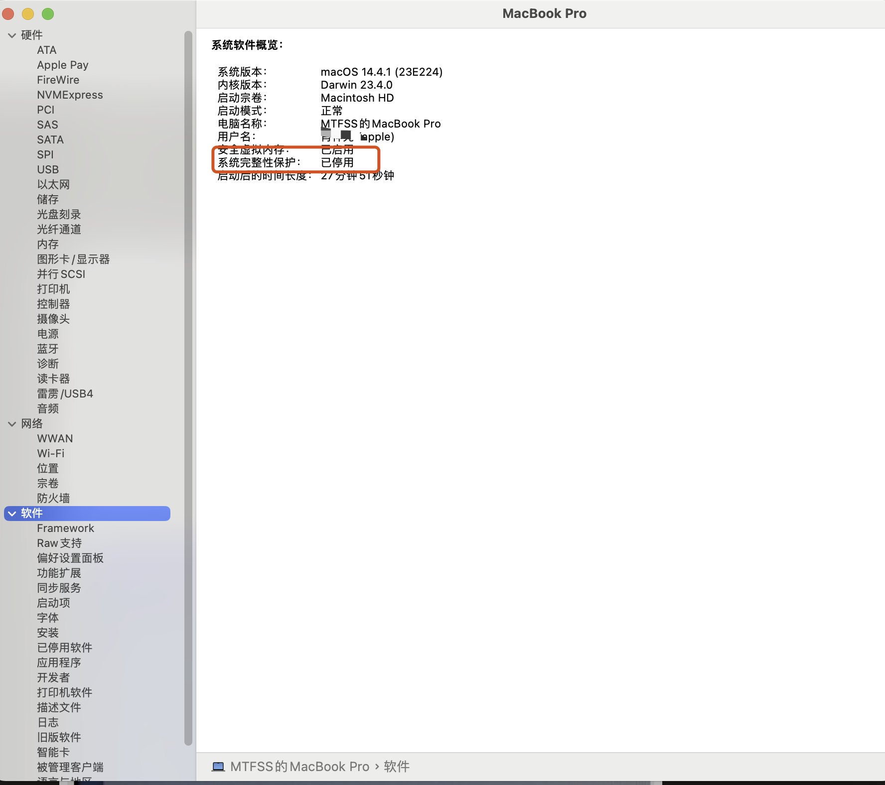 6、出现 System Integrity Protection is off. 证明 SIP 已成功关闭