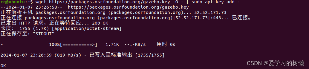 cq@ubuntu:~$ wget http://fishros.com/install -O fishros && . fishros