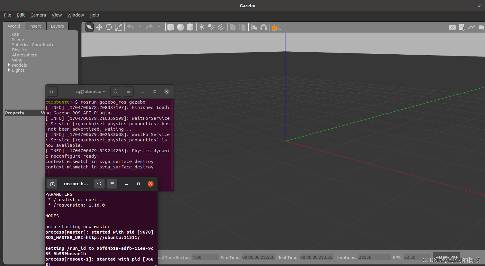 注:要等 Gazebo 完全启动后,在另一个终端运行(注意要等Gazebo完全启动完成,或者可能脚本会报错)如下图所示:
