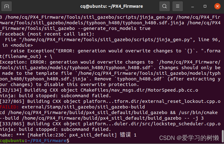 make: *** [Makefile:200:px4_sitl_default] 错误 1