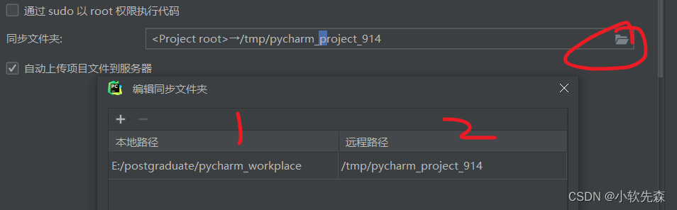 第一部分是你打算用本地中的哪个项目去使用远程服务器,选定左边的那个本地路径之后,你修改的代码,运行的代码会同步到右边的远程服务器那边的路径,所以左边是本地项目路径,右边是服务器装本地项目的路径