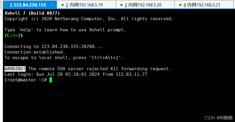 通过Xshell建立隧道,可以连接远程上的内网Linux系统(需要一个可以连接公网的服务器作为跳板机)这里我们准备了4台服务器(1台跳板机,3台内网服务器)通过Xshell建立隧道即可实现。