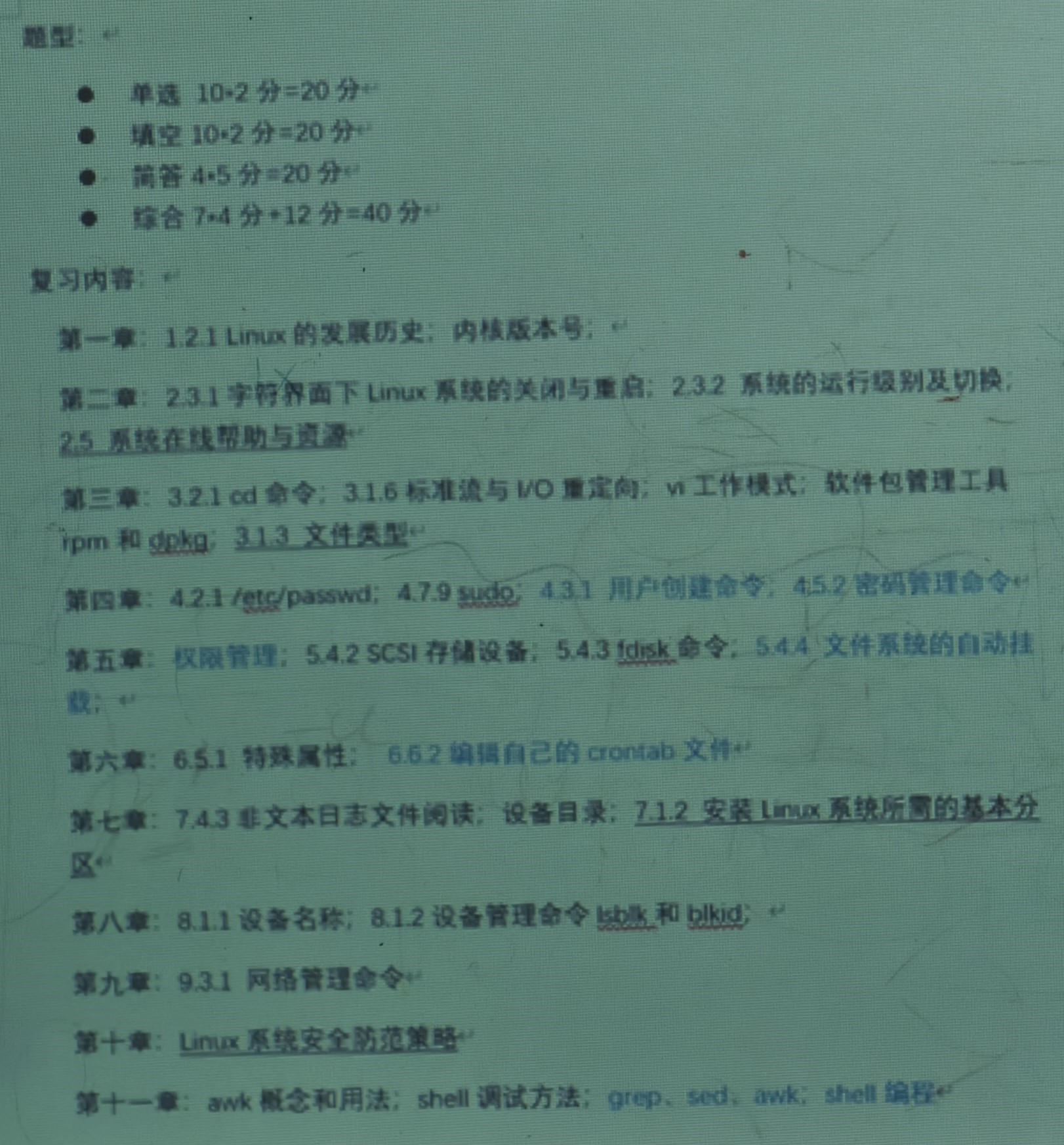 两选择,两填空,一个简答,一综合(写grep命令),17分