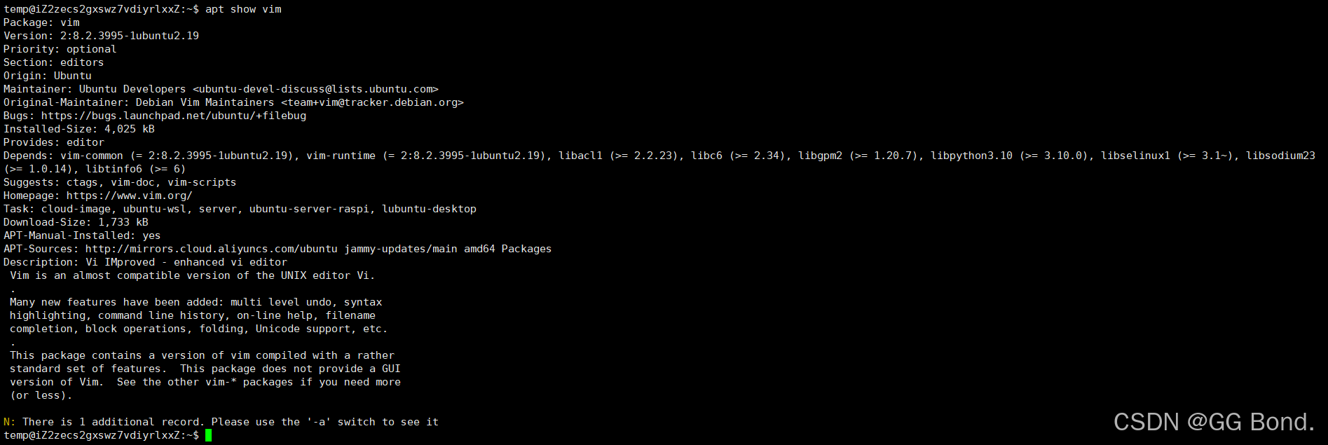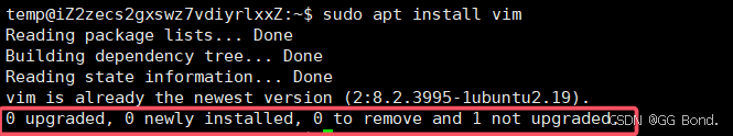 在我的个人用户中已经下载过vim,所以我们可以看到我们的执行结果为0待操作