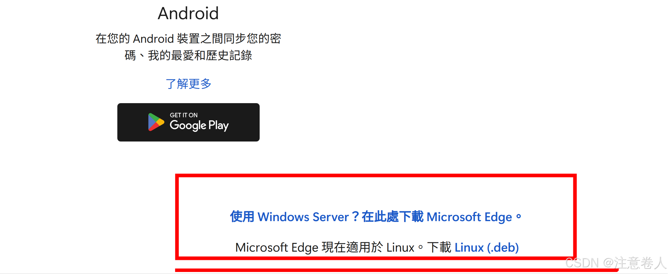滚轮到下面,找到适用于 Linux 的 Microsoft Edge
