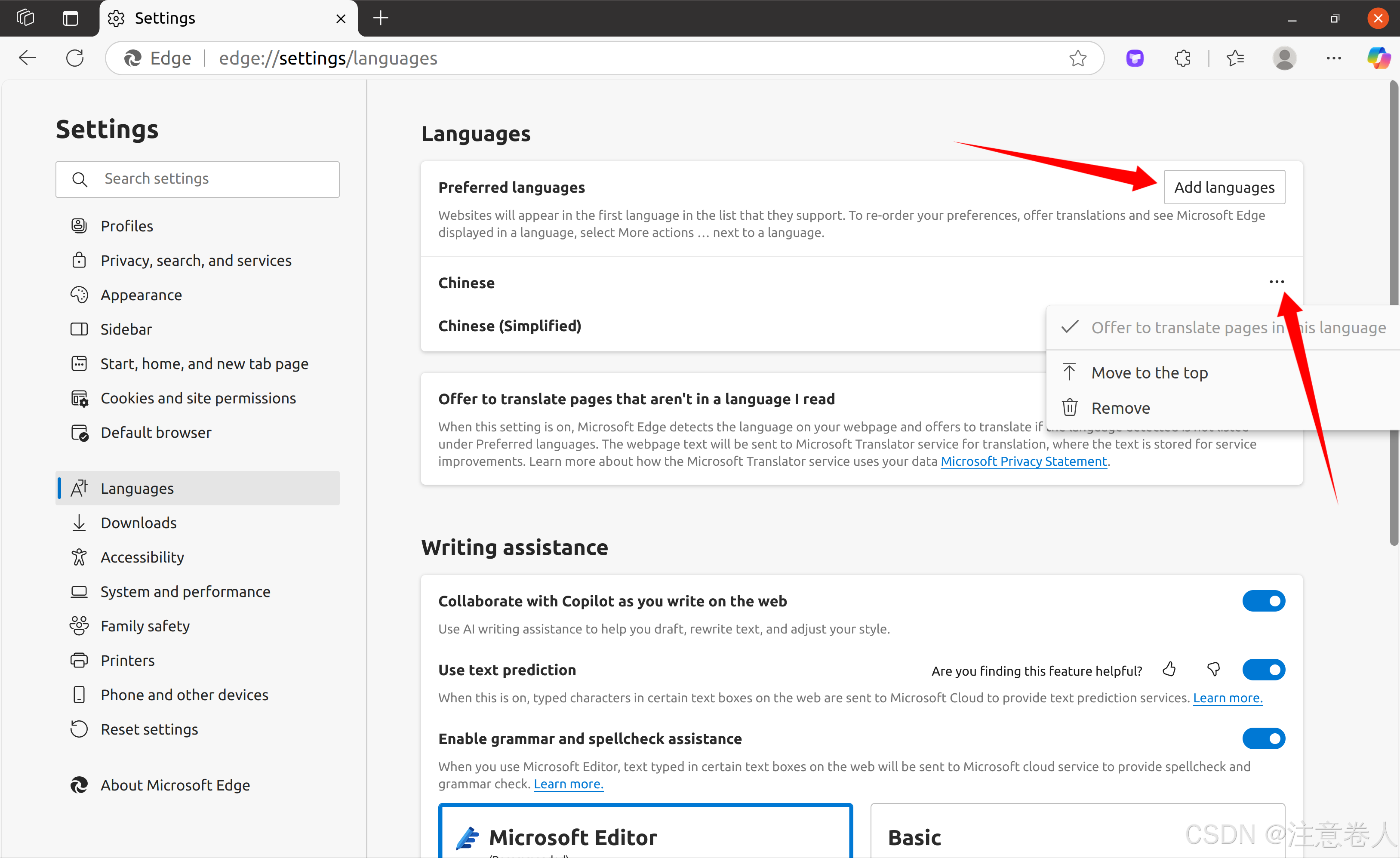 但是我们很快发现languages里面,网上说的“勾选第一个框【Display Microsoft Edge in this Language】”根本就没有。