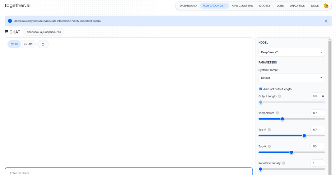 DeepSeek的R1模型是开源的,很多第三方平台已经部署了这个模型。比如Together AI,你可以在它的平台上免费使用R1模型。只需注册登录,进入Playground,选择“Chat”模式,然后切换为R1模型即可。