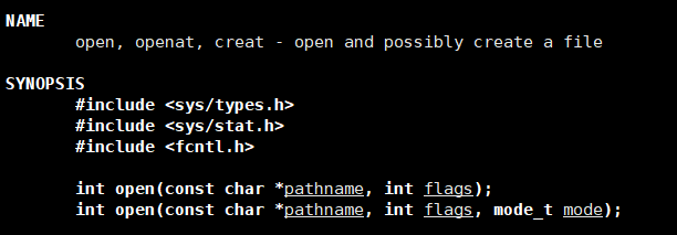 pathname:文件路径falgs:选项(约等于C语言里面的打开模式),通过 或|来实现传递多个选项【这个选项本质是宏实现的标记位】- 常见选项: