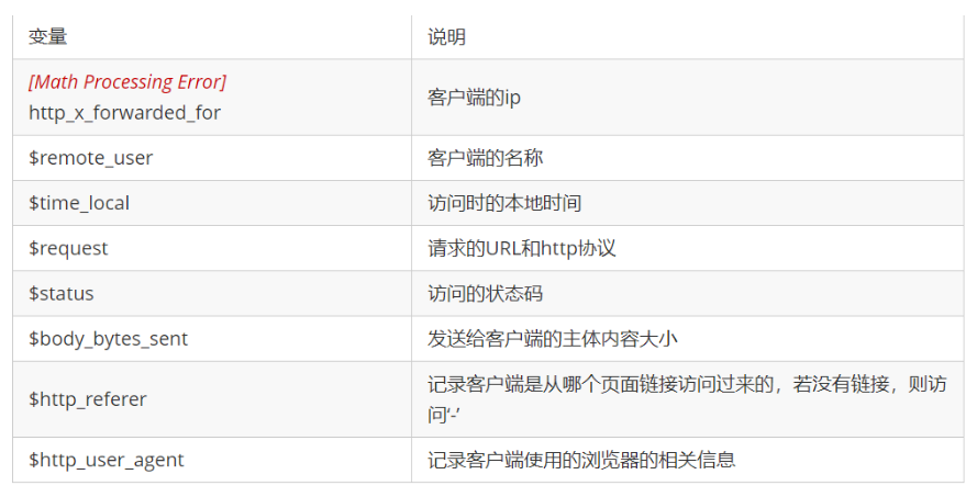 Nginx中通过access_log和error_log指令配置访问日志和错误日志,通过log_format我们可以自定义日志格式。