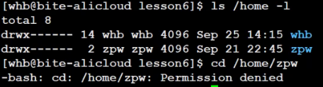 我们在用户whb的所属的一个目录里以root身份创造了一个文件root.txt,其拥有者和所属组都是root,然后我们通过sudo chmod a-rwx root.txt把所有人的所有权限去掉。