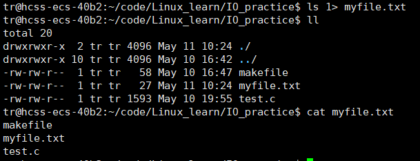1指向myfile.txt。ls往1输出,此时1指向myfile.txt,于是就往myfile.txt输出了。